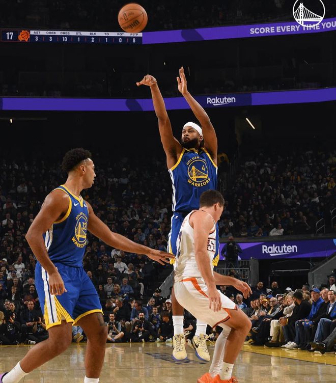 值得一提的是,勇士上半場替補席合計砍下41分,創(chuàng)球隊新賽季替補席得分新高。