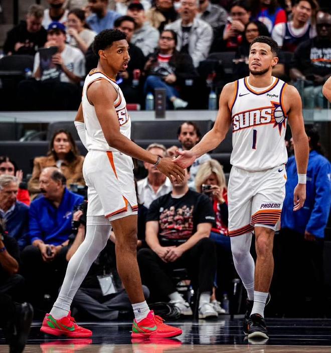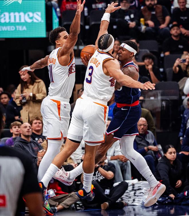 二號(hào)罪人(布克):13中6得14分2籃板2助攻,正負(fù)值0!作為組織控衛(wèi),他眼里完全只有籃筐,打球太獨(dú)了,第二節(jié)手感不佳卻還是浪投最終球隊(duì)被快船反超比分,是落后二號(hào)罪人!