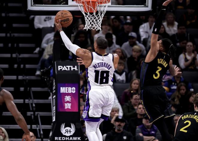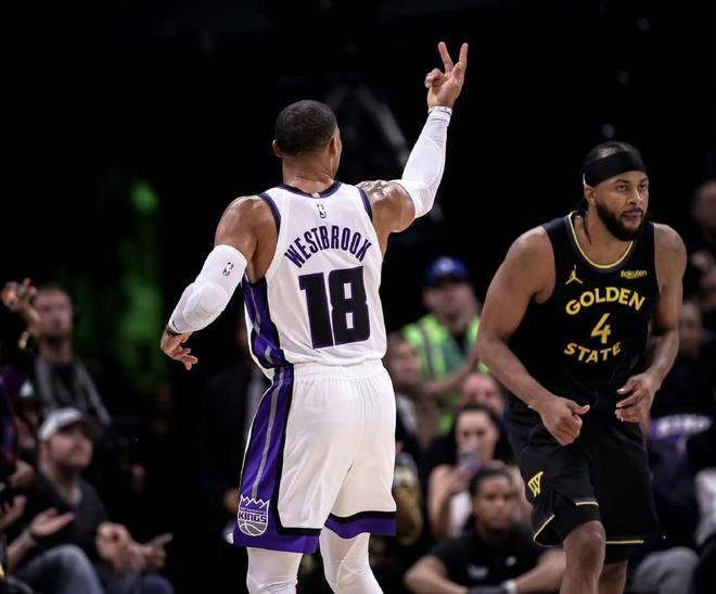 今天勇士三巨頭缺陣,庫里、追夢、巴特勒高掛免戰(zhàn)牌,殘陣出戰(zhàn)。面對這樣的勇士,國王本該輕松取勝,卻打得驚險。威少確實成為勝負手,他首發(fā)35分鐘,13投9中,三分4中3,砍下23分16籃板10助攻1搶斷的三雙。勇士策略大膽放空,威少用精準三分回應(yīng),自信心爆棚——熟悉的“自信龜”歸來。國王也是大膽變陣,將威少擺上大前鋒,與尤班克斯(中鋒)、德羅贊(側(cè)翼)、施羅德、克勞福德(后場)組成首發(fā)。邏輯清晰:威少年齡漸長,沖殺籃下已非所長,但籃板拼搶、單防強度、組織串聯(lián)仍具優(yōu)勢。