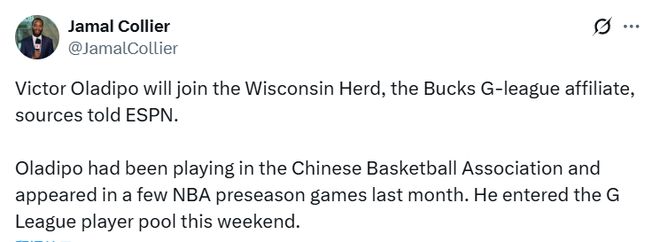 北京時(shí)間11月10日,據(jù)ESPN記者科利爾報(bào)道,兩屆全明星后衛(wèi)奧拉迪波即將加入雄鹿隊(duì)的發(fā)展聯(lián)盟附屬球隊(duì)——威斯康星鹿群隊(duì)。