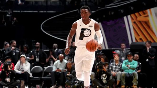 2017-18賽季,奧拉迪波是NBA最頂尖的雙向球員之一。他為步行者隊(duì)出戰(zhàn)75場,場均得到23.1分、5.2個(gè)籃板、4.3次助攻和2.4次搶斷,不僅獲得常規(guī)賽MVP和最佳防守球員選票,還當(dāng)選賽季進(jìn)步最快球員,同時(shí)入選最佳陣容三陣和最佳防守陣容一陣。
