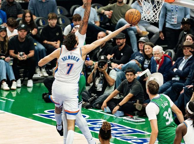 如果不犯規(guī),怎么防亞歷山大呢?亞歷山大已經(jīng)連續(xù)84場拿到20+,可以做到面對全聯(lián)盟所有球隊實現(xiàn)穩(wěn)定降維打擊。而休賽期拿了5年2.39億頂薪合同的霍姆格倫,本賽季也做到場均20分9籃板的數(shù)據(jù)。他的籃板球保護包括三分球投射,都是被嚴重低估的。雷霆和其他崛起的年輕球隊相比,他們最好的一點在于,陣容厚度太扎實了,所有人都能投三分,所有人都能防守,特別是亞歷山大以身作則,三后衛(wèi)+兩內(nèi)線的體系,以及小陣容的無縫切換,雷霆都沒有明顯短板,畢竟內(nèi)線還有哈滕這個肉盾。