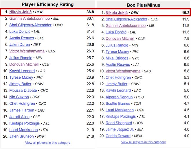 ——BPM值+19.2,同樣賽季第一和歷史第一(賽季第二的SGA+11.9)