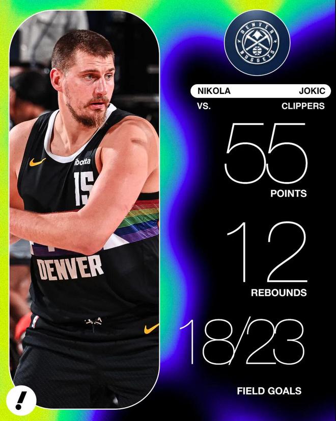 2、55分是約基奇的生涯第三高分,上賽季他曾單場拿過61分10籃板10助攻、56分16籃板8助攻