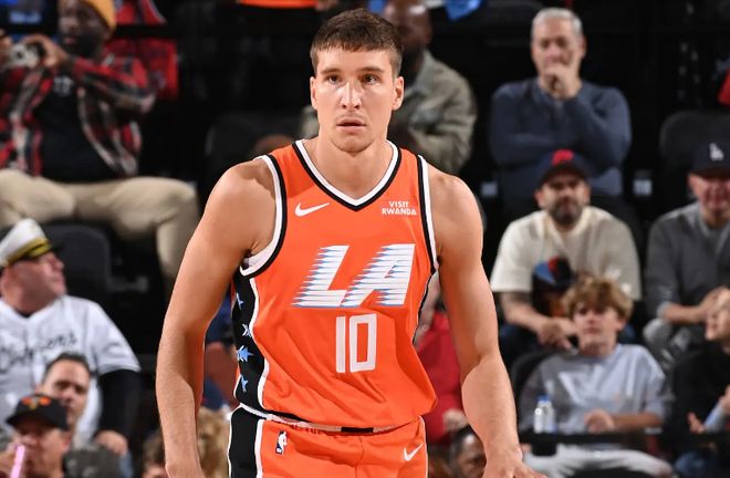 博格達(dá)諾維奇在上賽季中段的一筆交易中被亞特蘭大老鷹送到了快船。在加盟快船之后,博格達(dá)諾維奇在上賽季的NBA常規(guī)賽中總共出場(chǎng)30次,場(chǎng)均出場(chǎng)時(shí)間達(dá)到了25分鐘,場(chǎng)均數(shù)據(jù)為11.4分3.1籃板3.2助攻0.7搶斷0.2蓋帽,還有1.2次失誤和2.3次犯規(guī),投籃命中率47.4%,三分命中率42.7%,罰球命中率87.5%。到了季后賽,博格達(dá)諾維奇總共出場(chǎng)7次,場(chǎng)均出場(chǎng)時(shí)間達(dá)到了16.7分鐘,場(chǎng)均數(shù)據(jù)為6.4分2.9籃板2.1助攻0.4搶斷,還有1.6次失誤和3.6次犯規(guī),投籃命中率36.4%,三分命中率29.2%,罰球命中率85.7%。本賽季開(kāi)季至今,博格達(dá)諾維奇受到傷病和戰(zhàn)術(shù)安排方面的影響總共出場(chǎng)5次,場(chǎng)均出場(chǎng)時(shí)間達(dá)到了22.2分鐘,場(chǎng)均數(shù)據(jù)為7.2分3.2籃板3.2助攻0.4搶斷.2蓋帽,還有1.8次失誤和2.4次犯規(guī),投籃命中率33.3%,三分命中率31.8%,罰球命中率87.5%。