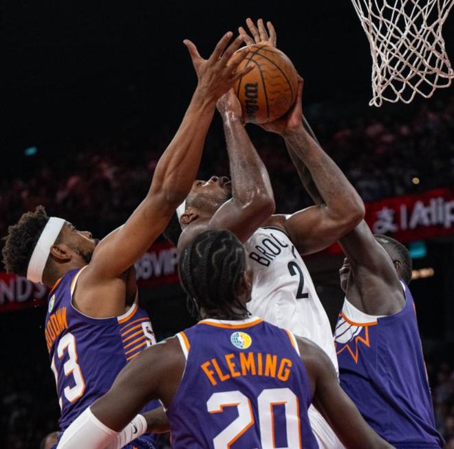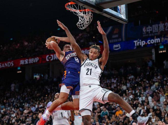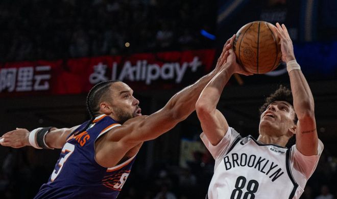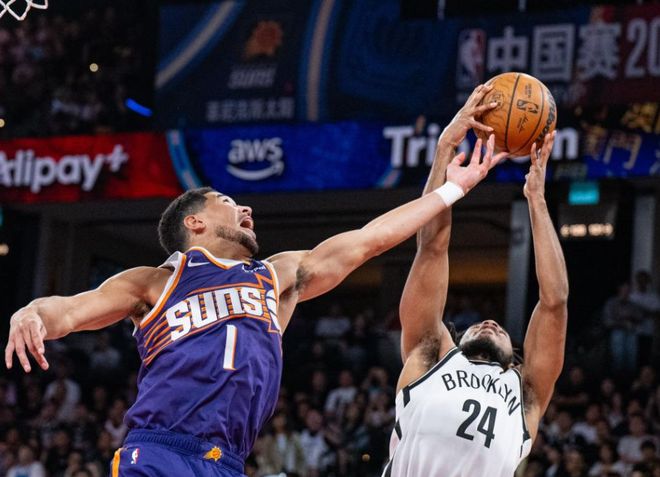 NBA中國(guó)賽-曾凡博未登場(chǎng)籃網(wǎng)罰球準(zhǔn)絕殺險(xiǎn)勝太陽 布克18+5+5