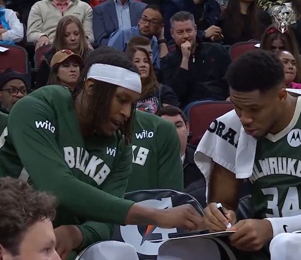 搶老李活兒?字母哥在替補(bǔ)席認(rèn)真畫戰(zhàn)術(shù),特納也參與其中