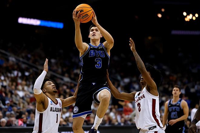 杰明出生于2006年3月,現(xiàn)年19歲,是今年NBA選秀大會中籃網(wǎng)在首輪第8順位選中的來自俄羅斯的后場新星。根據(jù)選秀大會前聯(lián)合試訓體測環(huán)節(jié)的數(shù)據(jù),杰明的裸足身高為203.8cm,臂展為208.9cm,站立摸高為268cm,體重為90.4kg。在上賽季的NCAA賽場,杰明總共所在的楊百翰大學出場33次,場均出場時間達到了27.5分鐘,場均數(shù)據(jù)為10.6分3.9籃板5.5助攻1.2搶斷0.4蓋帽,還有2.9次失誤和1.2次犯規(guī),投籃命中率41.2%,三分命中率27.3%,罰球命中率69.5%。杰明在上賽季的表現(xiàn)也是得到了充分地認可,他成功入圍了上賽季的Big 12聯(lián)盟最佳新秀陣容。