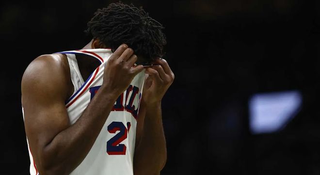 對陣凱爾特人一役,恩比德出戰(zhàn)20分鐘,9投1中僅得4分6籃板2助攻,三分球4投0中,第四節(jié)關鍵追分階段被主帥納斯直接雪藏。比賽中,他甚至在被懷特迎射后給對手鼓掌,這般“佛系”姿態(tài),與昔日那個怒目圓睜、誓要統(tǒng)治禁區(qū)的MVP判若兩人。更刺眼的是正負值:他在場時,76人凈輸16分;他下場的28分鐘里,球隊反而凈勝17分。費城媒體毫不留情地指出:“棄用恩比德是正確決定,他已不在贏球陣容中?!?/p>