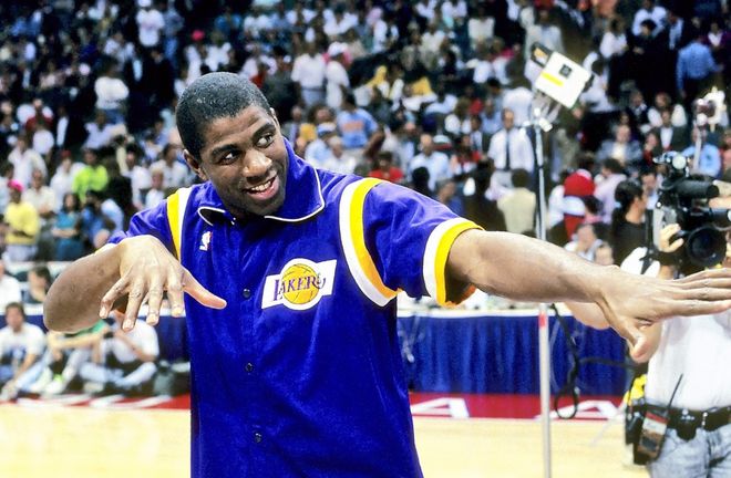 提到“全能”,魔術師約翰遜的名字永遠是繞不開的起點。2米06的身高,放在任何時代的控衛(wèi)位置上都是“超模級”存在——要知道,同位置球員平均身高僅1米90左右,而魔術師比絕大多數(shù)小前鋒還要高出一截。但他的偉大,遠不止“身高優(yōu)勢”這么簡單:他既能像傳統(tǒng)控衛(wèi)般用精準傳球串聯(lián)全隊,又能像得分后衛(wèi)般突破殺傷,更能在關鍵時刻頂?shù)絻?nèi)線,與中鋒肉搏不落下風。
