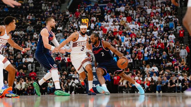NBA常規(guī)賽爭奪繼續(xù),在揭幕戰(zhàn)大比分不敵重建魚腩爵士隊后,快船隊常規(guī)賽第二戰(zhàn)迎來與太陽隊的較量,結(jié)果快船隊強(qiáng)勢反彈129-102拿下27分大勝擊敗太陽豪取賽季首勝。