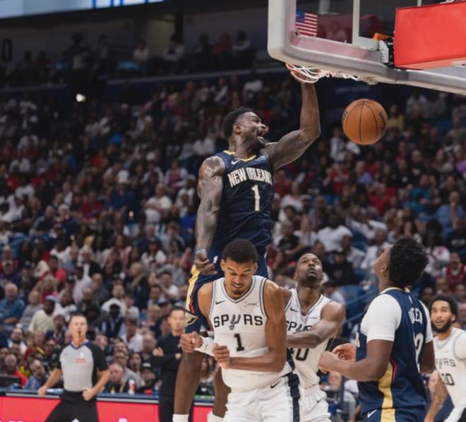 第一場面對弗拉格這個狀元,第二場就面對“胖虎”錫安·威廉森這個狀元。