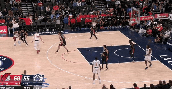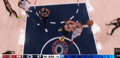 上半場 快船被 開拓者的小陣容打得毫無招架之力,一度斷電,小卡這個拋投不中,夏普快攻一騎絕塵輕松暴扣,開拓者打出了一波32-10的沖擊波。