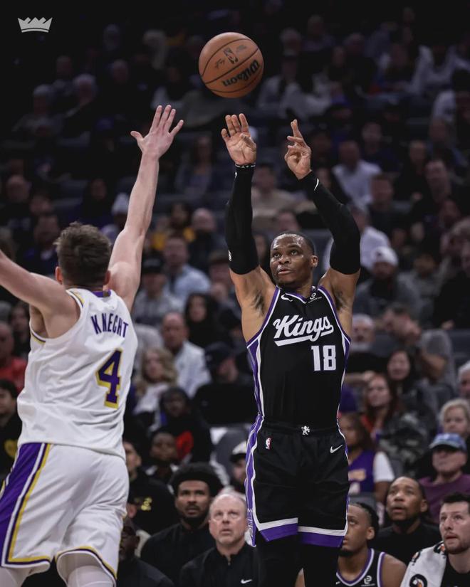 本場(chǎng)比賽,拉文投籃24中12,三分9中4,罰球4中4,得到32分4籃板2失誤,正負(fù)值-8。威少打出了加盟國王之后的最強(qiáng)表現(xiàn):替補(bǔ)出戰(zhàn)27分11秒,投籃12中6,三分6中4,罰球6中2,拿到18分6籃板6助攻1搶斷,正負(fù)值0。