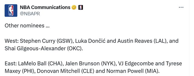 西部:庫里、東契奇、里夫斯、亞歷山大