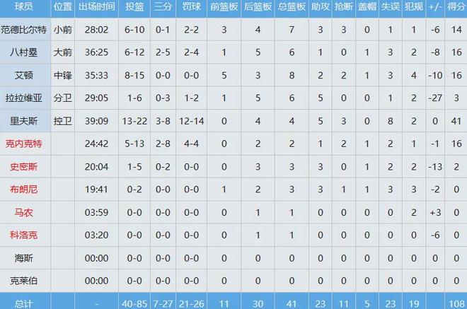 湖人那邊,艾頓面對(duì)舊主16分8板(5前場(chǎng)板)2助2斷,里夫斯41分4板5助3斷。