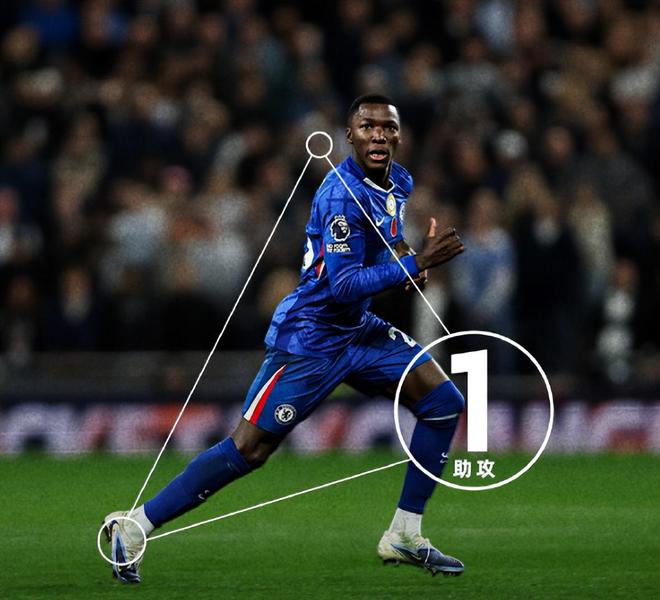 這場(chǎng)6分戰(zhàn)的勝利,始于熱刺后場(chǎng)的致命失誤,切爾西中場(chǎng)核心凱塞多的精準(zhǔn)判斷一擊致命。第34分鐘,哈維-西蒙斯回傳力度不足,范德芬解圍遲疑瞬間,凱塞多如獵豹般插上斷球,突入禁區(qū)后冷靜橫傳,若昂-佩德羅門前推射空門得手。這粒進(jìn)球既是藍(lán)軍壓迫戰(zhàn)術(shù)的必然結(jié)果,更是凱塞多攻防兩端統(tǒng)治力的縮影。